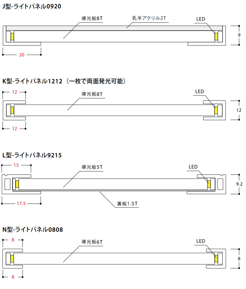| パネル | パネル外寸(mm) | 画面サイズ(mm) | 重量(Kg) | 電力(W) | 照度(Lx) | LED数(個) |