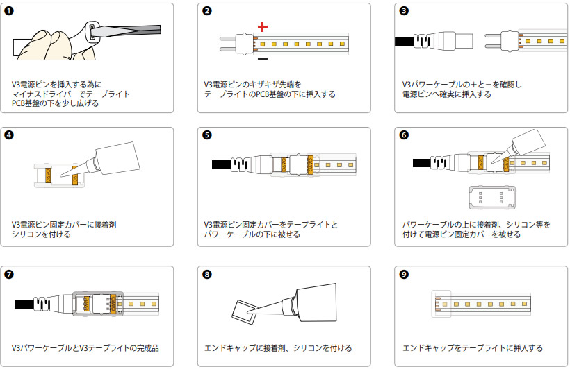 | モデル名 | V3-6500K-DC92V | V3-2700K-DC92V | V3-RED-DC92V | V3-GREEN-DC92V | V3-BLUE-DC92V |